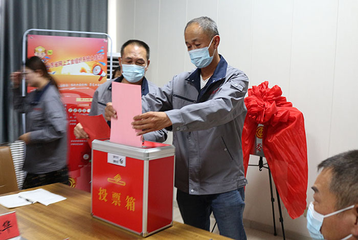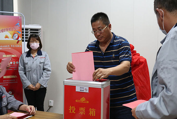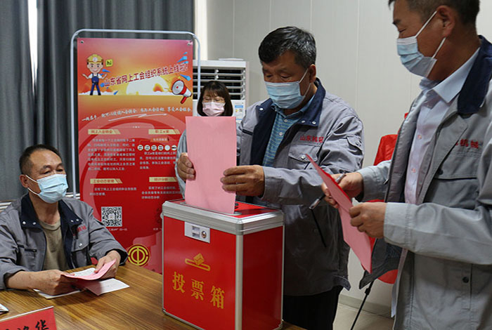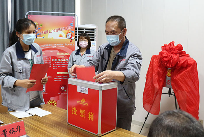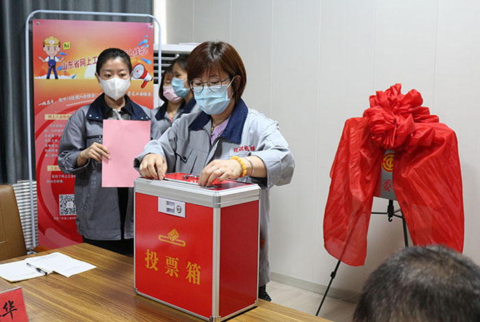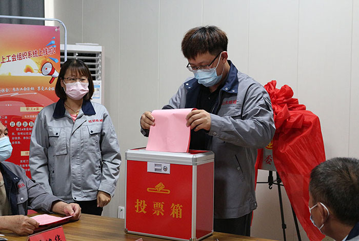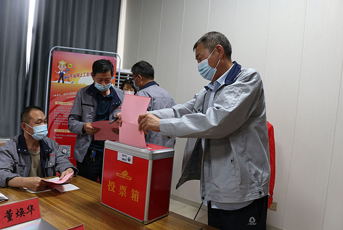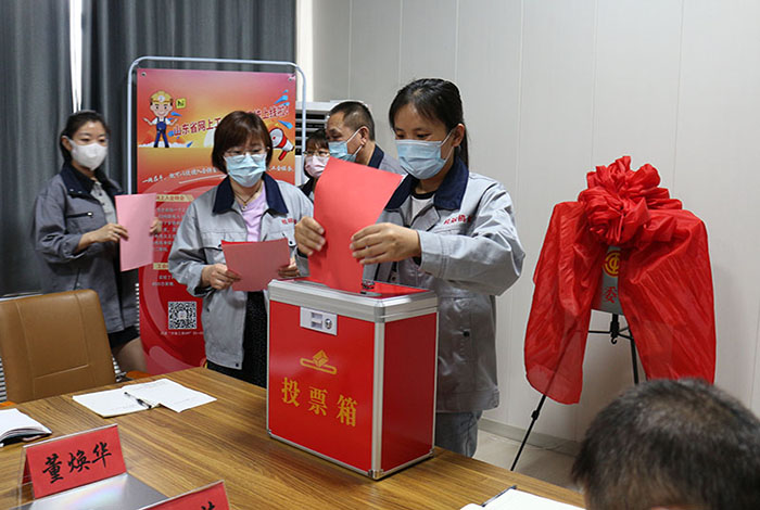 2022年06月16日山東桂冠機械有限公司一屆一次工會會員代表大會會議準時召開,出席本次工會會議重要領導人員有:市總工會黨組成員副主席王霞同志,濱河片區黨工委副書記王澤和同志,桂冠機械有限公司董事長楊桂剛同志等相關領導,在濱河片區總工會專職副主席孫木榮宣讀完市總工會《關于同意召開山東桂冠機械有限公司工會一屆一次會員代表大會的批復》后,出席本次會議的25名公司在職人員在兩位選舉檢票人的監督下通過《選舉辦法》民主選舉出公司第一屆工會委員會主席及委員,工會經費審查委員會主席及委員,審議通過公司第一屆女職工委員會,勞動爭議調解委員會。